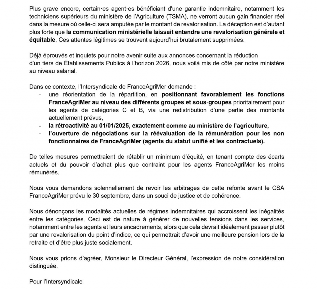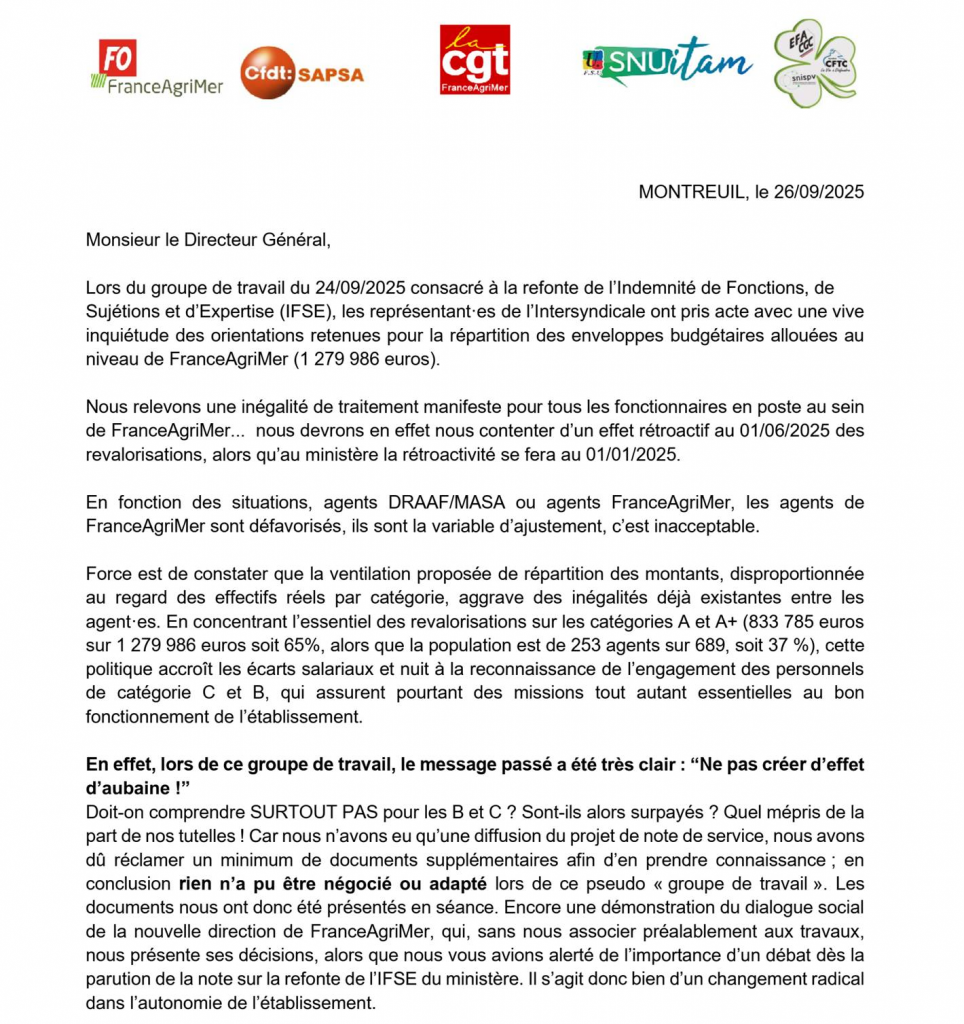 Lettre ouverte Intersyndicale adressée au Directeur Général de FranceAgriMer