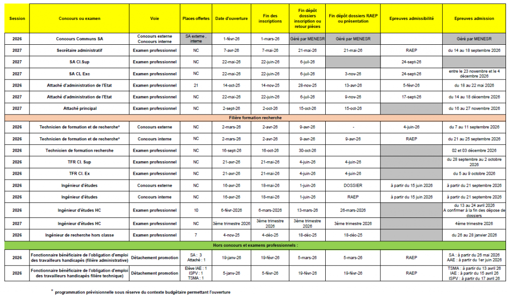 La note de service n°2026-59 du 04-02-2026 présente le calendrier prévisionnel des concours et des examens professionnels du MAASA organisés cette année.